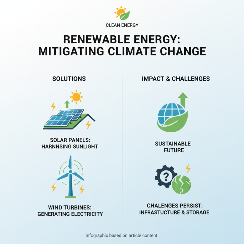 As the climate crisis deepens, renewable energy solutions emerge as vital tools for mitigation. Solar panels blanket rooftops, harnessing sunlight to produce clean energy. Wind turbines dot the landscape, their blades spinning gracefully while generating electricity. These infrastructures promise a sustainable future, yet challenges persist.